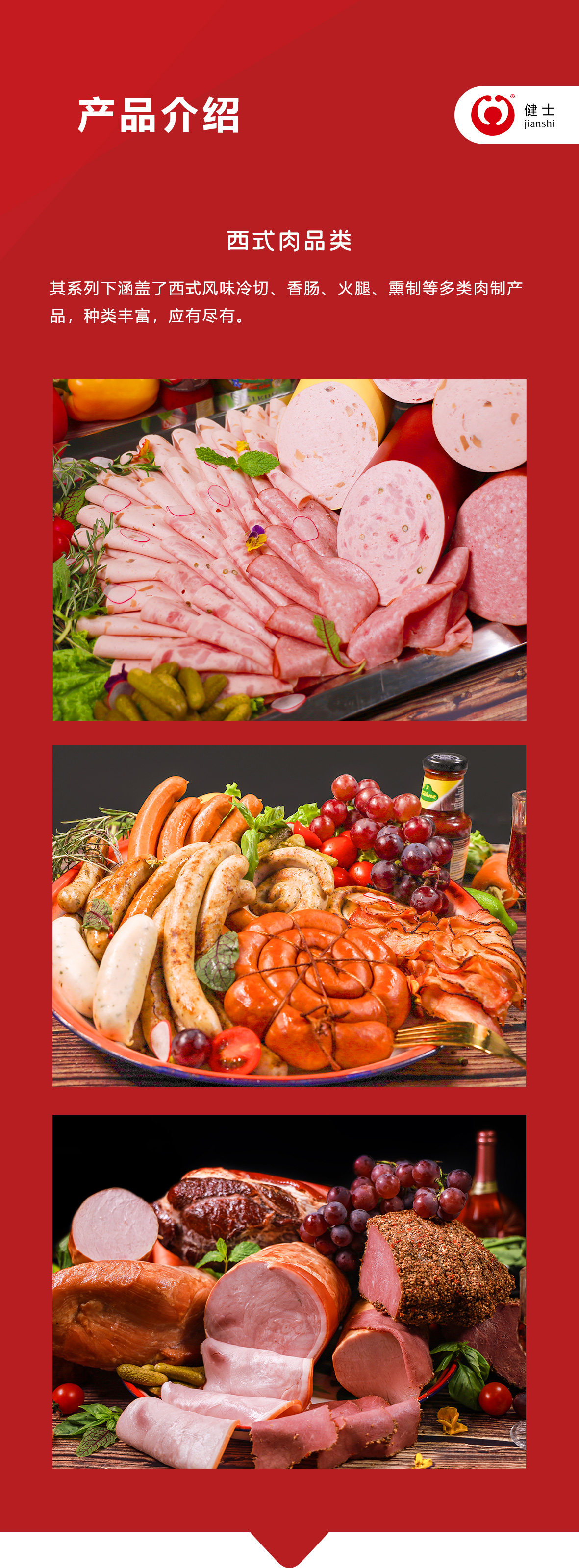 公司注冊商標為“健士”,主營業(yè)務涉及西式肉制品、中式預制半成品,以及與國家級鮭鱒魚養(yǎng)殖基地深度合作開發(fā)的高端水產(chǎn)品,公司旗下還設立了清真食品分公司,將業(yè)務延伸至清真肉制品加工領域。公司秉承“誠信為本,客戶至上,團結(jié)奮進,追求卓越”的經(jīng)營理念。產(chǎn)品銷往全國各大城市星級酒店、航空配餐企業(yè)及大型連鎖餐飲,部分產(chǎn)品遠銷至香港等地區(qū)。