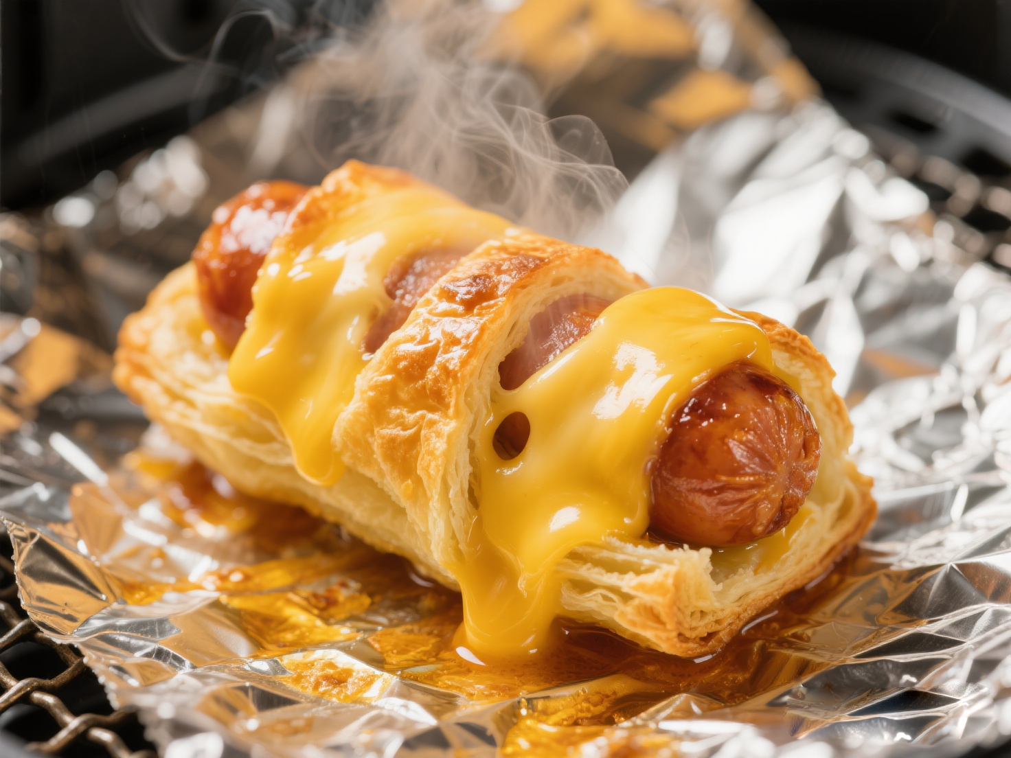② 炸制:空氣炸鍋 鋪硅油紙 → 腸仔卷噴油 → 180℃ 8分鐘(中途翻面)