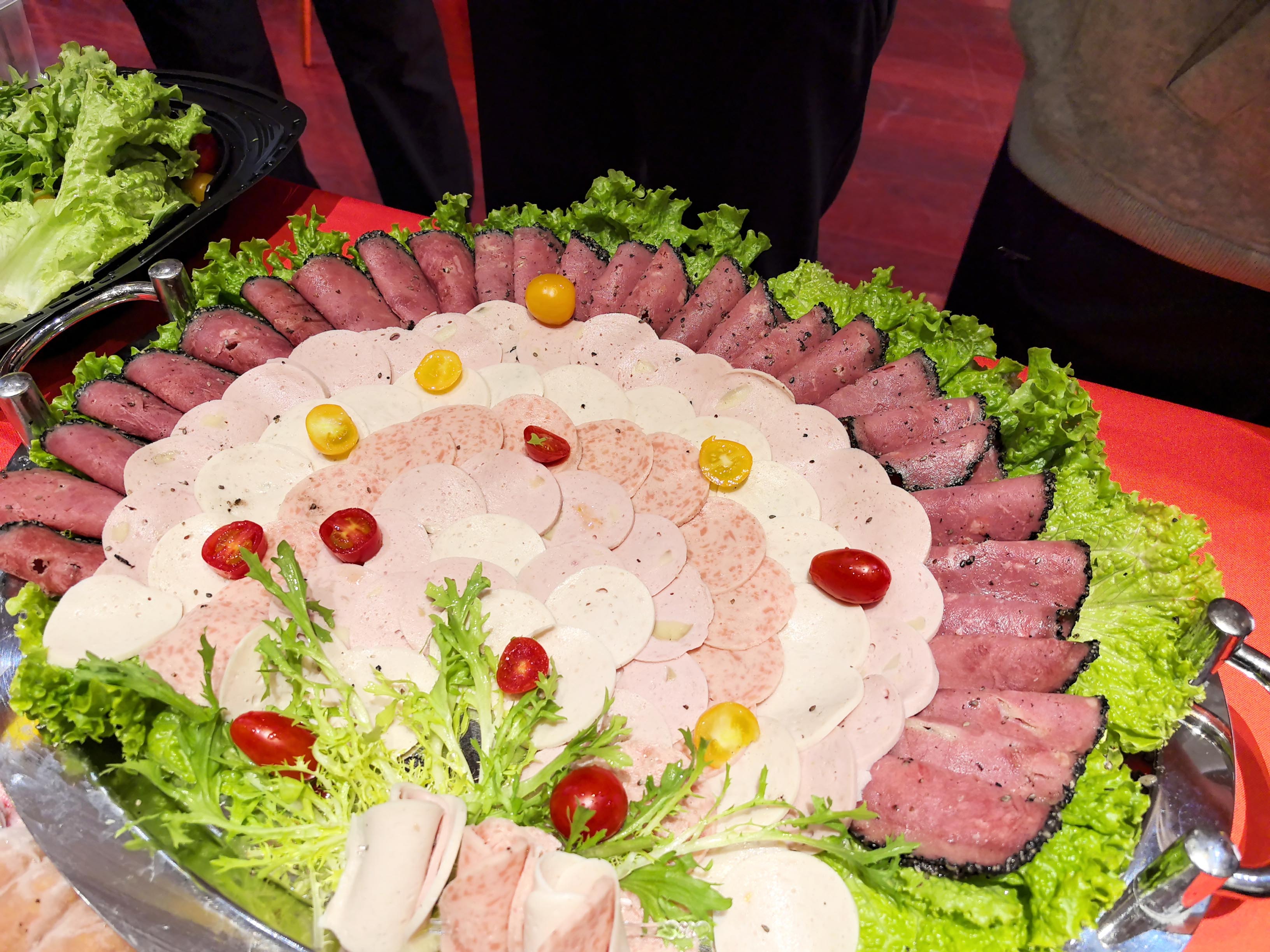 精心準備的精制培根切片拼盤,肉質(zhì)鮮嫩,咸香適口;德式香腸拼盤更是誠意滿滿,瑞士雞肉烤腸的鮮嫩、圖林根香腸的醇厚、德式香蔥油煎盤腸的鮮香、小牛腸的細膩,每一款都讓人回味無窮;冷切拼盤里,蘑菇里昂那的獨特風味、黑椒牛肉切片的緊實口感、雞肉冷切腸的 Q 彈,滿足了不同嘉賓的味蕾偏好;還有經(jīng)典的德式脆皮豬肘,外皮酥脆,內(nèi)里肉質(zhì)軟爛多汁,一上桌就吸引了眾人目光,贏得陣陣好評!