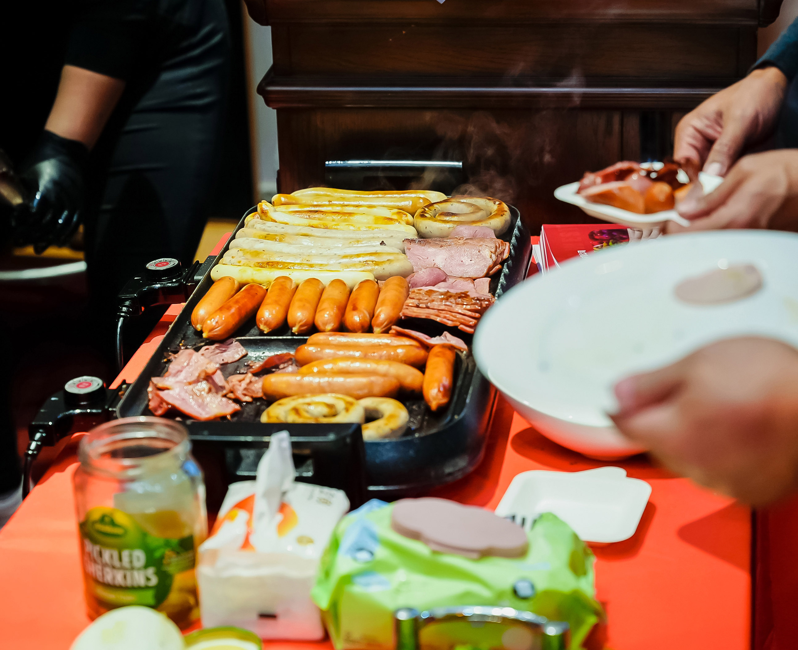 剛剛結(jié)束比賽的運動員、忙碌的工作人員與興致勃勃的游客們紛紛被吸引至我們的展位。大家品嘗到熱騰騰、肉汁飽滿的香腸與焦香適宜的培根,更可現(xiàn)場購買,將這份便捷與美味帶回家。我們的展位前一度排起長隊,成為了市集中一道亮麗的風景線和溫暖的補給站。