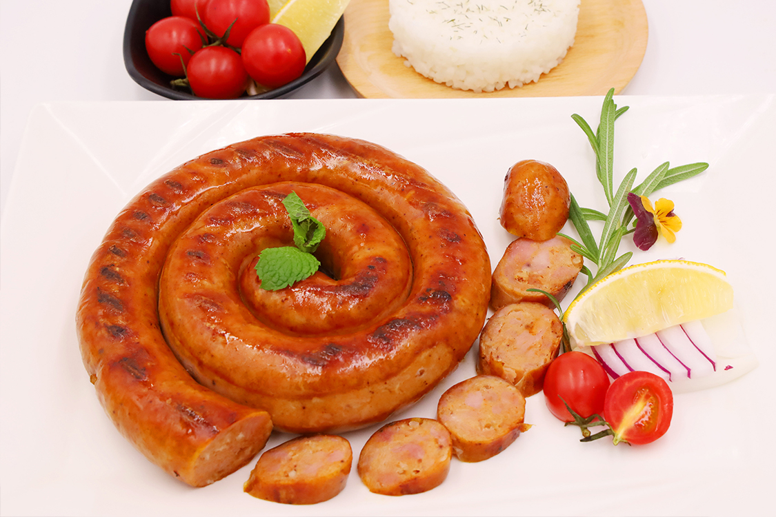 主要配料:豬肉、水、馬鈴薯淀粉、食用鹽、大豆蛋白、蒜、香辛料、天然腸衣、食品添加劑等