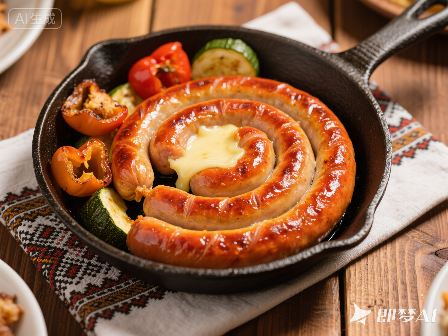 腸衣煎至酥脆,搭配烤蔬菜的甜潤,口感層次豐富。